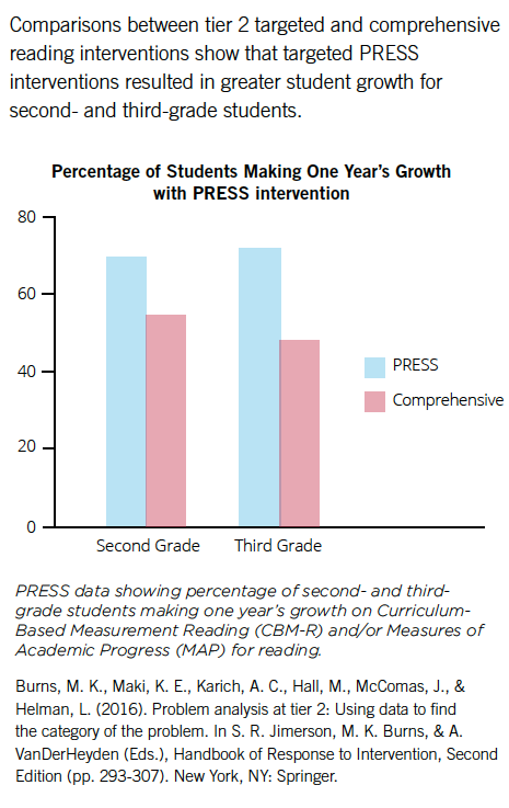 PRESS interventions target the NRP reading categories noted above and provide explicit skill instruction with protocols for frequent progress monitoring. Learn more about our research and interventions here.