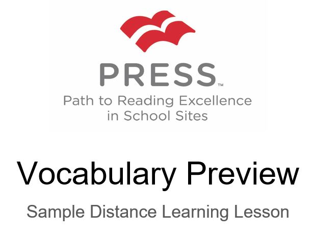 Distance Learning Example Vocabulary Preview (PRESS EL-2 intervention) Click Image to Download Vocabulary Preview Sample Lesson Template (Microsoft Powerpoint File) Learn More About PRESS