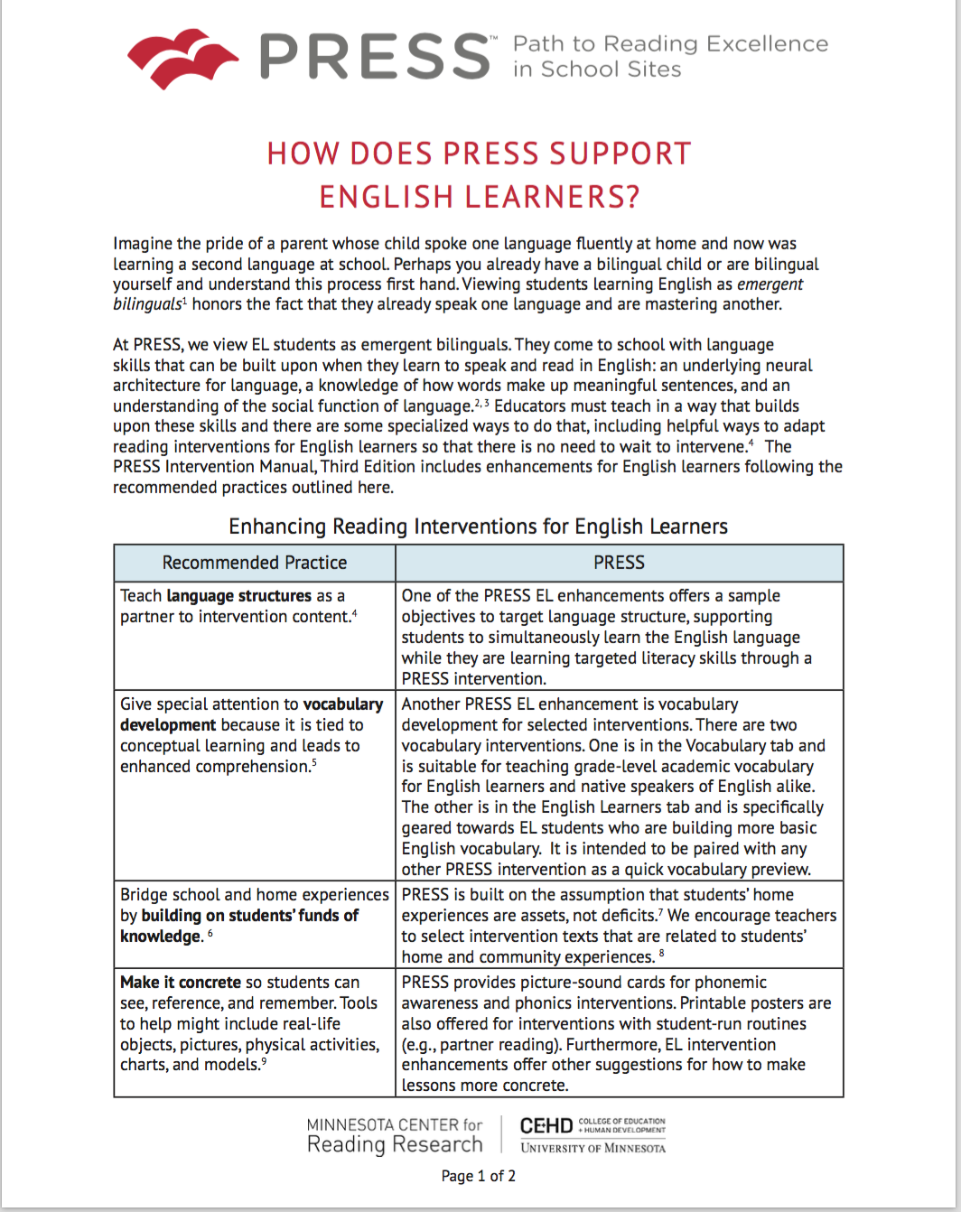 How does PRESS Support English Learners?